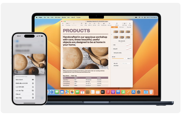 HANDOFF #Bắt đầu công việc trên một thiết bị... hoàn tất trên một thiết bị khác • Khi ở gần nhau, các thiết bị chạy Mac, iOS hoặc iPadOS có thể tự động chuyển công việc bạn đang làm từ thiết bị này sang thiết bị kia. • Một biểu tượng đại diện cho ứng dụng bạn vừa dùng cuối cùng sẽ xuất hiện trên thiết bị thứ hai. • Bạn chỉ cần nhấp hoặc chạm vào để tiếp tục tại nơi đã tạm dừng mà không cần phải tìm kiếm tệp. • Bạn bắt đầu viết báo cáo trên máy Mac nhưng muốn tiếp tục bằng iPad trên đường đến cuộc họp? Handoff giúp bạn dễ dàng chuyển công việc đang làm!