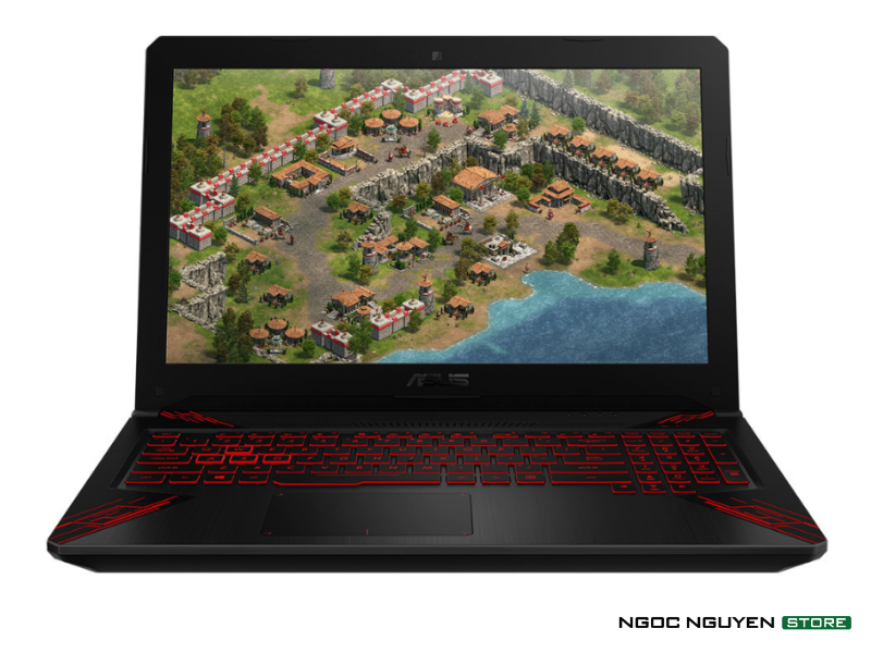 Bàn phím Asus TUF FX504GD được lấy cảm hứng từ máy tính bàn, tối ưu hiệu quả gõ phím dù là khi bạn chơi game hay đánh văn bản. Asus cho biết đây là chiếc laptop có bàn phím bền nhất với độ bền lên tới 20 triệu lần nhấn, gấp đôi bàn phím laptop thông thường. Các phím đều được tính toán tỉ mỉ với keycap lõm 0,25mm và hành trính phím 18mm, cho tốc độ gõ nhanh và thoải mái. Không thể không kể đến đèn nền bàn phím cực “ngầu” và hữu ích khi bạn sử dụng trong bóng tối.