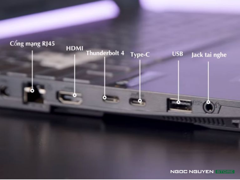 Nhờ vào sự đa dạng của các cổng kết nối, mình có thể kết nối và tương tác với các thiết bị ngoại vi một cách dễ dàng như Thunderbolt 4, Jack tai nghe, USB Type-C, HDMI, LAN,...