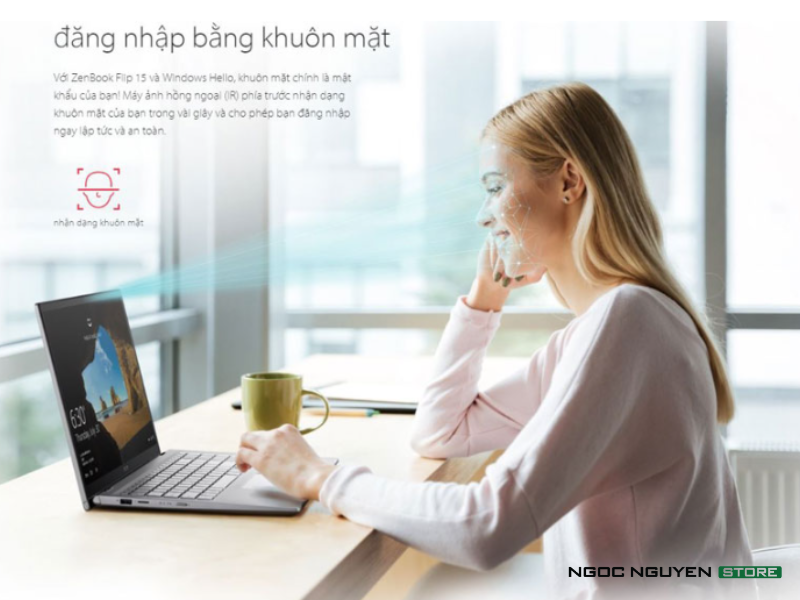 Với camera trên zenbook q508ug kết hợp Windows Hello, khuôn mặt chính là mật khẩu của bạn. Máy ảnh hồng ngoại (IR) phía trước nhận dạng khuôn mặt của bạn trong vài giây và cho phép bạn đăng nhập ngay lập tức và cực an toàn.