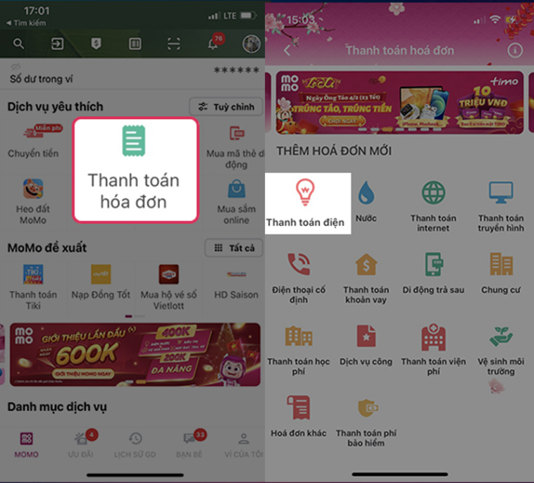 Cách thanh toán hóa đơn tiền điện bằng ví điện tử MoMo trên điện thoại