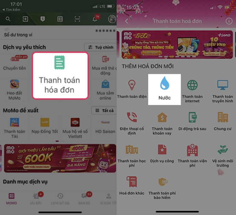 Cách thanh toán hóa đơn tiền nước bằng ví điện tử MoMo trên điện thoại