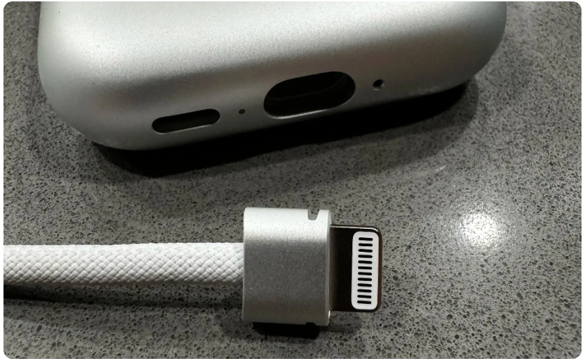 Trước đó người dùng đã phát hiện ra rằng nếu lấy que chọc sim chọc vào lỗ nhỏ bên cạnh đuôi dây nối với cục pin của Apple Vision Pro sẽ tháo được cáp sạc và để lộ ra đầu sạc lightning. Đầu sạc lightning này không giống với chuẩn lightning mà chúng ta đang dùng trên các điện thoại iPhone và phụ kiện mà nó dài hơn, nhiều chân hơn. Những tưởng đây là phiên bản lightning lạ duy nhất được phát hiện thì mới đây iFixit đã phát hiện một cổng cắm lightning còn bự hơn nữa.
