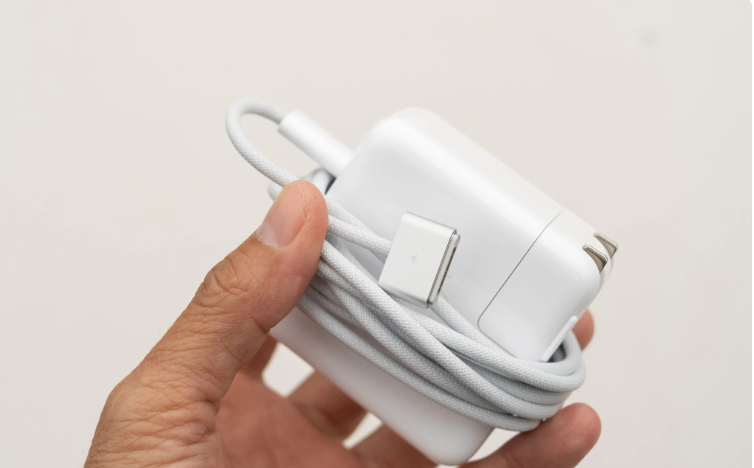 Đi kèm theo máy có một sợi dây sạc với đầu MagSafe của Apple. Đây là dây sạc giá trị cao vì nó xịn, đẹp và khi anh em dùng sạc MagSafe anh em sẽ trống được 2 cổng USB-C trên MacBook để sạc cho thiết bị khác hay làm việc khác.