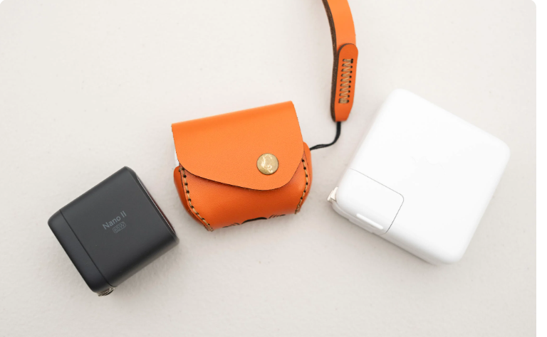 Anker Nano II 65W - AirPods Pro 2nd trong bao da SEN - Apple 70W USB-C Charger