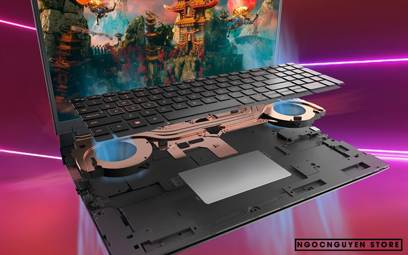 Với bộ xử lý AMD Ryzen 6600H và các cài đặt hiệu suất được tối ưu hóa, bạn có thể tận hưởng hiệu suất cao cấp nhất quán và mạnh mẽ trong mọi trải nghiệm chơi game. Ngoài ra, thiết kế tản nhiệt mới và cải tiến lấy cảm hứng từ Alienware có tính năng làm mát tối ưu nhờ hệ thống hút gió kép, cánh quạt siêu mỏng , ống đồng và bốn lỗ thông hơi được đặt ở vị trí chiến lược. Vì vậy, bất kể hành động nóng đến mức nào, hệ thống của bạn sẽ giữ ở trạng thái mát.