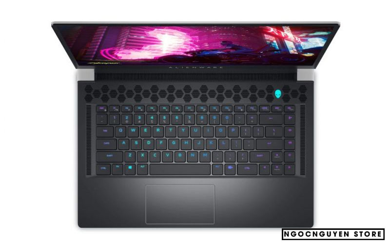Các lỗ thông hơi hình lục giác nằm phía trên bàn phím và được bố trí dọc theo mặt sau cũng mang lại cho Dell Alienware X15 R1 Laptop Gaming khả năng xả nhiệt tốt hơn. Bàn phím trên của máy có RGB bốn vùng giúp người dùng có thể dễ dàng chơi game vào ban đêm.