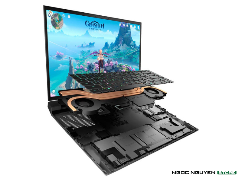Không chỉ có ngoại hình mà hệ thống tản nhiệt của Dell G16 7620 cũng được lấy cảm hứng từ Alienware giúp máy hoạt động tối ưu dưới áp lực. Theo đó, máy được trang bị 2 quạt tản riêng biệt cho CPU và GPU, nhiều ống đồng và bốn lỗ thông hơi lớn được bố trí hợp lý và các cánh quạt siêu mỏng giúp luồng khí mát di chuyển khắp hệ thống, đảm bảo các bộ phận bên trong luôn hoạt động tốt nhất ngay cả khi bạn đang làm việc với các tác vụ nặng.