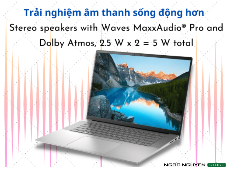 Bên cạnh đó, máy được tích hợp khá nhiều tiện ích để hỗ trợ tối đa trải nghiệm hàng ngày, trong đó mình tâm đắc nhất là công nghệ bảo mật vân tay nhờ cảm biến tích hợp với nút bấm. Source giúp mở máy nhanh và bảo mật hơn mà không cần nhập mật khẩu rườm rà. Âm thanh Stereo speakers with Waves MaxxAudio® Pro and Dolby Atmos, 2.5 W x 2 = 5 W total giúp bạn đắm chìm trong không gian âm nhạc sống động và chân thực kể cả khi chơi game hay xem phim, nghe nhạc giải trí. Dell Inspiron 5630 cũng có một webcam full HD ở cạnh trên của màn hình, đảm bảo hình ảnh luôn sắc nét và rõ ràng khi bạn tham gia lớp học hay họp trực tuyến.