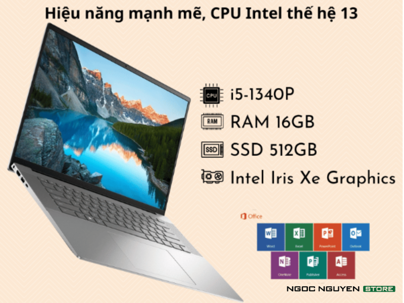 Laptop dell 5630 sở hữu Bộ vi xử lý Intel thế hệ thứ 13, chính xác hơn là Intel® Core™ i5-1340P Processor (12MB Cache, up to 4.60GHz) có khả năng tối ưu và mang đến hiệu năng mạnh mẽ giúp cân bằng hoàn hảo các tác vụ văn phòng và hạn chế mức độ tải công việc. Card đồ họa Intel Iris Xe Graphics tích hợp cũng đủ tốt để chỉnh sửa hình ảnh 2D, các tệp thiết kế cơ bản trên ứng dụng Adobe Home.