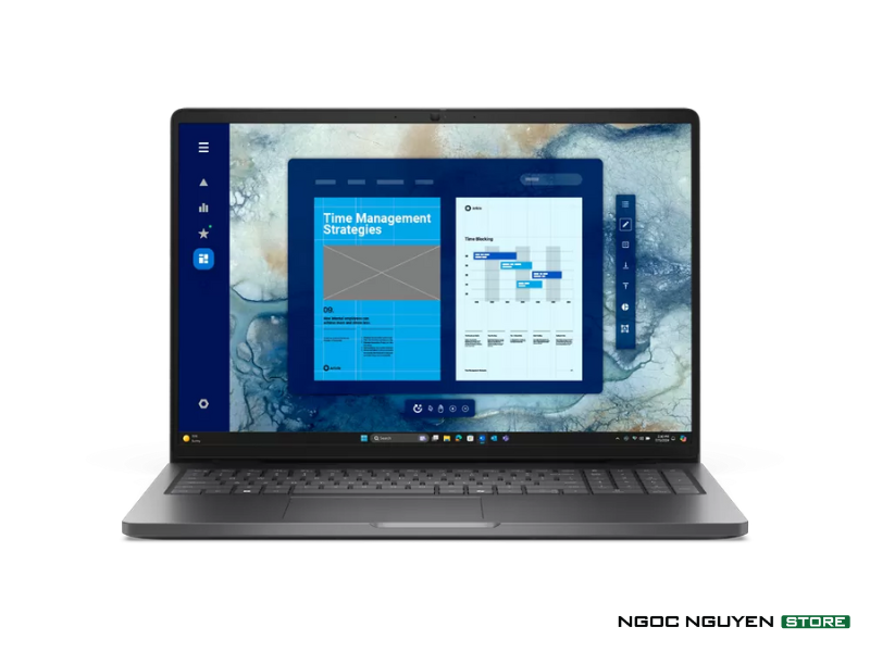 Điểm nhấn sáng giá của Dell Pro 16 là màn hình 16 inch với độ phân giải FHD+ (1920×1200) và tỷ lệ vàng 16:10. Tỷ lệ này cung cấp thêm 10% không gian hiển thị theo chiều dọc so với màn hình 16:9 truyền thống, giúp bạn xem được nhiều nội dung hơn trên các trang web, bảng tính Excel hay văn bản Word mà không cần cuộn trang liên tục. Tấm nền IPS cho góc nhìn rộng, kết hợp với độ sáng 300 nits và lớp phủ chống chói Anti-Glare, đảm bảo chất lượng hình ảnh luôn rõ nét, sống động ngay cả khi làm việc ngoài trời hay dưới ánh đèn văn phòng.
