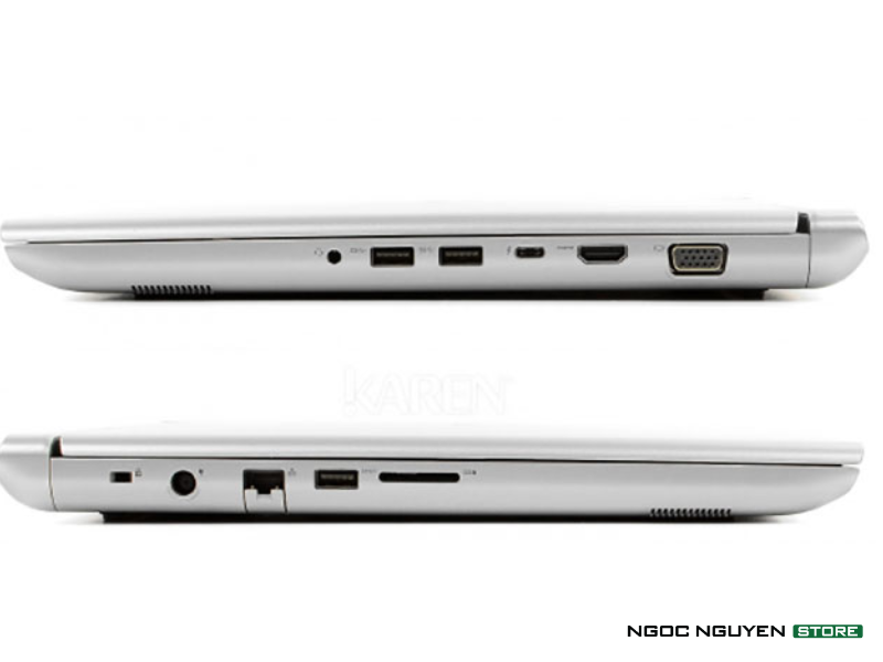 Ngoài ra máy được trang bị rất đầy đủ các cổng kết nối, bên cạnh phải chúng ta có một jack cắm tai nghe combo 3.5mm, hai cổng USB Type-A 3.0, cổng USB Type-C, HDMI và VGA. Bên cạnh trái là cổng sạc, cổng ethernet hay còn gọi là cổng LAN, một USB Type-A 3.0 và một khe cắm SD.