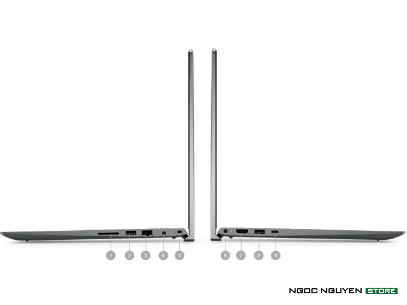Laptop Dell Vostro 5510 duy trì sự riêng tư của bạn. Điện thoại của bạn kết nối với PC của bạn thông qua kết nối điểm-điểm, an toàn của Dell Mobile Connect để dữ liệu của bạn không bao giờ bị lộ qua các kết nối internet không an toàn nhờ: Đầu đọc thẻ SD, 2 USB 3.2 Thế hệ 1 Loại A. RJ45. Giắc cắm tai nghe  Khóa hình nêm. Giắc cắm nguồn, HDMI 1.4, USB 3.2 Gen 2x2 Type-C (DP / Power Delivery)