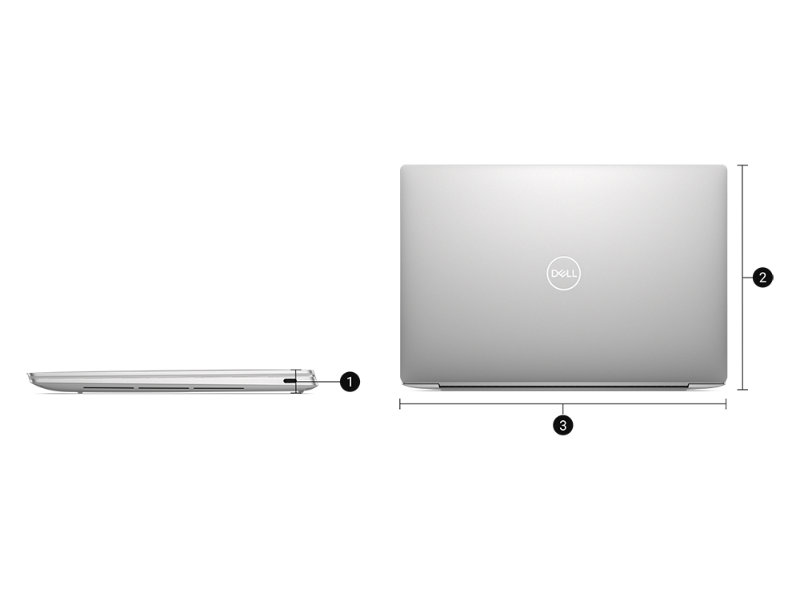 1. Độ dày: 14.80 mm (phiên bản OLED) hoặc 15.30 mm (Phiên bản FHD+) | 2. Chiều rộng: 199.10 mm | 3. Chiều dài: 295.30 mm