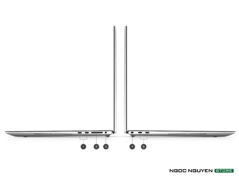 DELL XPS 17 9320 (2023) trang bị 4 cổng Thunderbolt ™ 4 (USB Type-C), 1 khe SD và jack 3,5mm. Việc giữ lại khe SD là một điểm cộng lớn khi Dell XPS 9730 vốn được sinh ra dành cho các Creator.