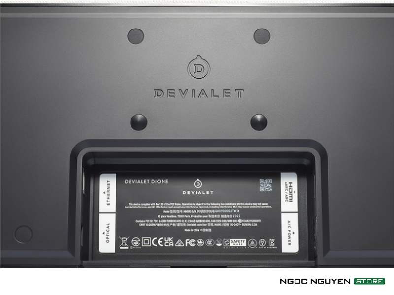 Loa soundbar Devialet Dione Opera được trang bị đầy đủ các cổng kết nối, cung cấp khả năng kết nối nhanh, tiện lợi với TV bao gồm các cổng kết nối 2.1 eARC / ARC HDMI cho phép truyền nhiều kênh âm thanh mà không bị giới hạn: