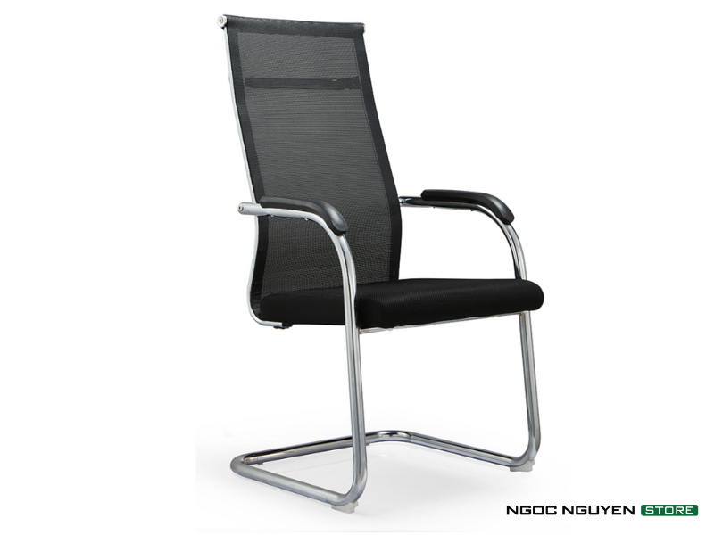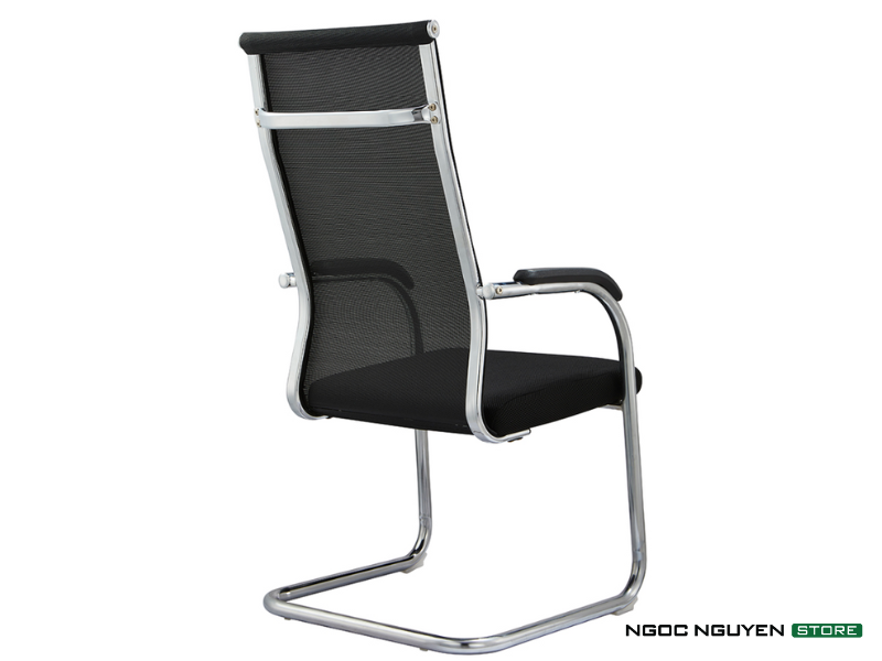 Cấu tạo khung thép mạ crome chắc chắn. Phần tựa lưng hơi cong giúp ôm sát cơ thể và hỗ trợ nâng đỡ bộ phận cột sống thẳng tự nhiên, giảm thiểu sự mệt mỏi khi ngồi họp lâu.