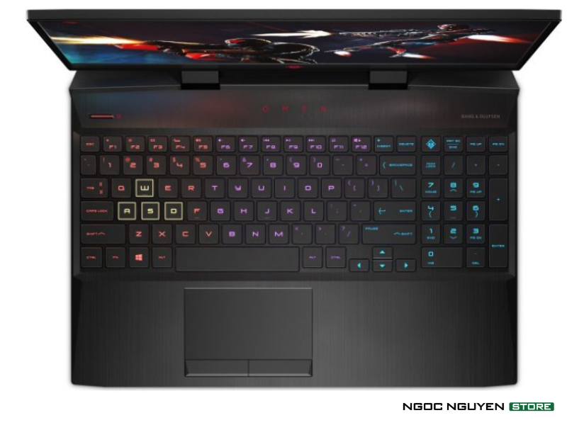 Bàn phím HP Omen 15 2018 cũng là một sự nâng cấp đáng giá so với phiên bản tiền nhiệm. Thay vì bàn phím led đỏ thì như năm ngoái, HP đã trang bị led 4 vùng cho thể tùy chỉnh qua phần mềm HP Command Center. Cảm giác gõ tốt, khung chắc chắn k có hiện tượng flex. Nói về đèn LED, thì đây là một yếu tố không thể thiếu của các thiết bị gaming. Led 4 vùng trên một sản phẩm thuộc dạng trên nghìn đô như Omen thì không phải là cái gì đó dẫn đầu. Vì như các bạn cũng đã biết, với giá này thì những hãng gaming từ Đài loan có LED RGB từng phím lâu rồi chứ không cần 4 vùng nữa. Nhưng, nhìn sang người hàng xóm ồn ào là Dell, cũng đến từ Mỹ thì với giá này bạn chỉ có G7 - duy nhất một màu xanh blue. Tuy nhiên, led trên máy chỉ có duy nhất 1 độ sáng duy nhất, mức sáng này hơi yếu và nó sẽ không thực sự nổi bật ở những nơi có cường độ ánh sáng môi trường cao.