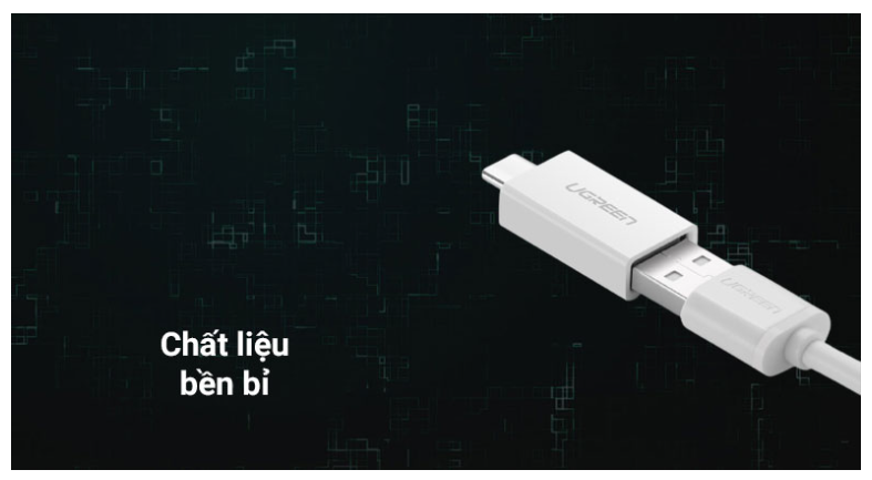 Đầu chuyển USB Type-C sang USB 3.0 Ugreen 30155 (Trắng) có đầu cắm được thiết kế vừa vặn, đảm bảo chắc chắn khi kết nối. Phần vỏ ngoài có cấu tạo bền bỉ, không dễ bị nứt vỡ khi rơi rớt.
