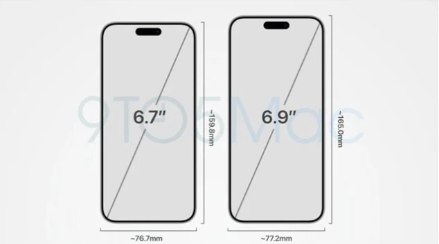 Hình ảnh CAD bị rò rỉ được cho là mặt trước của iPhone 15 Pro Max và iPhone 16 Ultra. Theo đó, iPhone 16 Ultra sẽ có kích thước màn hình 6.9 inch. Ước tính cho thấy, iPhone 15 Pro Max sẽ có chiều ngang là 76.7 mm, trong khi iPhone 16 Ultra dự kiến sẽ có chiều ngang là 77.2 mm.