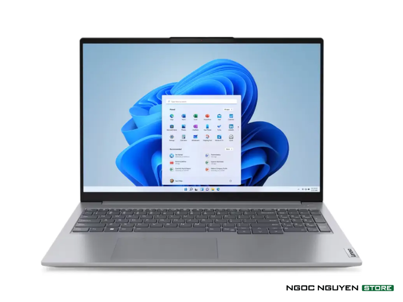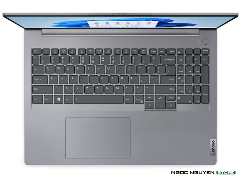 Lenovo ThinkBook 16 G6 ABP mang vẻ ngoài sang trọng với lớp vỏ nhôm màu xám Bắc Cực và thiết kế hiện đại. Điểm nhấn tinh tế là phần mặt lưng được chia thành hai vùng xám đậm nhạt độc đáo. Bàn phím công thái học cải tiến với các phím lớn hơn và nắp lõm, tạo cảm giác thoải mái khi gõ. Bàn phím này còn thân thiện với môi trường, làm từ 50% nhựa tái chế sau tiêu dùng. Touchpad rộng mượt mà và phím F9 thông minh có thể tùy chỉnh, giúp mở ứng dụng thường dùng một cách tiện lợi. Dù sở hữu màn hình lớn nhưng rất bất ngờ khi Lenovo ThinkBook 16 G6 ABP vẫn hết sức gọn nhẹ với độ mỏng 17,5mm và trọng lượng 1,7kg, vô cùng di động.