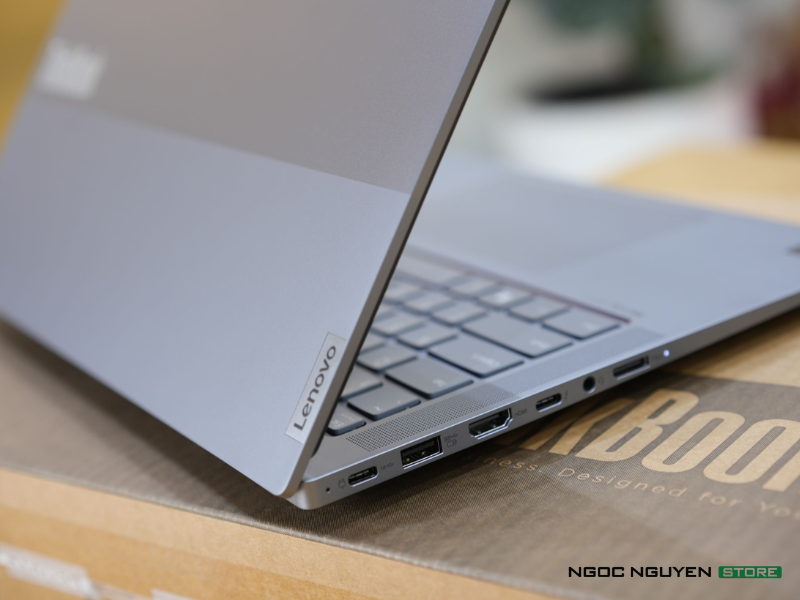 Sở hữu trọng lượng mỏng nhẹ nhưng  laptop Lenovo ThinkBook mới được trang bị đa dạng cổng kết nối, cho phép nó dễ dàng kết nối với các thiết bị ngoại vi trong quá trình làm việc. Dọc hai bên cạnh máy tính người dùng sẽ tìm thấy hai cổng USB Type-C trong đó có một cổng Thunderbolt 4 cho tốc độ truyền 40Gbps, hai cổng USB Type-A, đầu đọc thẻ nhớ SD, cổng HDMI 2.1, giắc cắm tai nghe 3.5mm, mạng Ethernet (RJ45) và khe cắm bảo mật Kensington Nano.