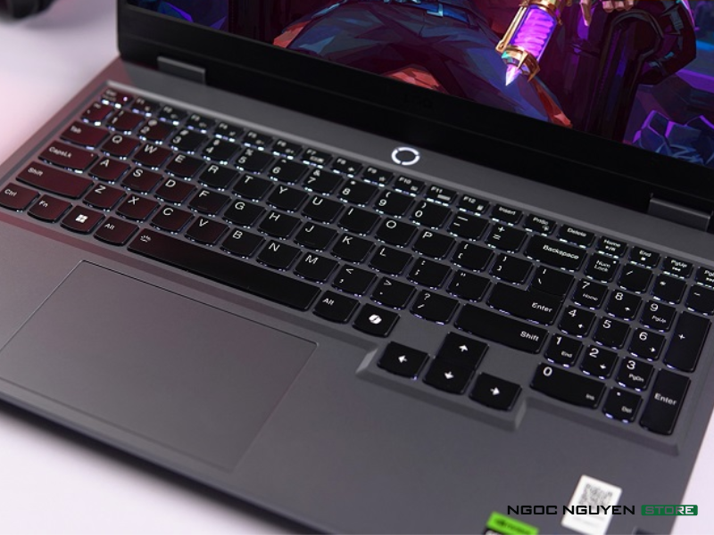 Lenovo LOQ 15ARP9 được trang bị bàn phím TrueStrike với chất lượng không kém gì bàn phím cơ. Bàn phím của máy có tiết diện lớn, khoảng cách 1,5mm hợp lý, hành trình phím sâu cho trải nghiệm gõ siêu mê. Ngoài ra, bàn phím trên chiếc Lenovo này được trang bị thêm đèn nền RGB hỗ trợ cho người dùng làm việc trong điều kiện thiếu sáng một cách thuận lợi, cho bạn những thao tác nhanh nhạy và chính xác.