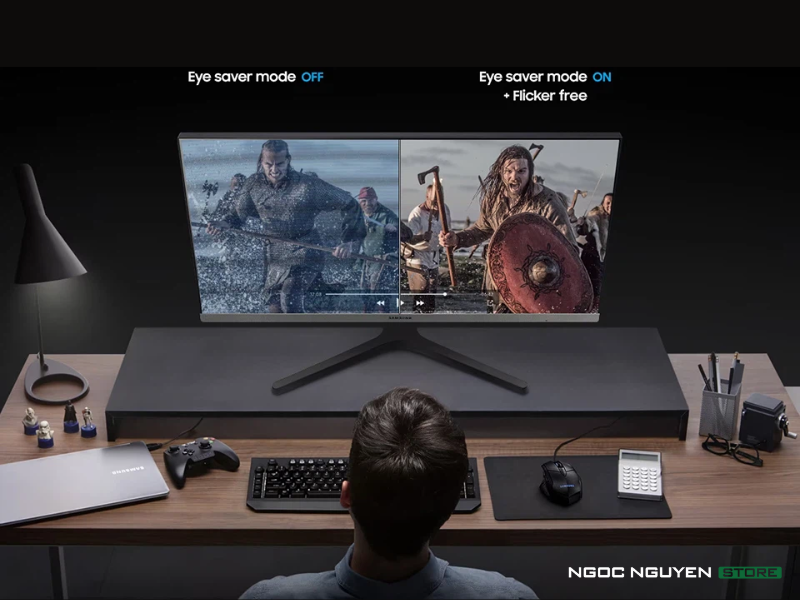 Để bạn được thoải mái dù làm việc trong thời gian dài, màn hình Samsung LS27R350FHEXXV tích hợp tính năng bảo vệ mắt tiên tiến. Chế độ bảo vệ mắt sẽ hạn chế lượng ánh sáng xanh ảnh hưởng xấu đến sức khỏe của bạn. Trong khi đó công nghệ chống nhấp nháy giúp loại bỏ hiện tượng nhấp nháy gây mỏi mắt. Nhờ vậy, ở mọi điều kiện ánh sáng, bạn vẫn có thể giữ được sự tập trung khi làm việc.