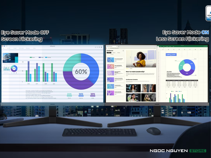 Giúp cho đôi mắt của bạn thoải mái, ngay cả khi trải nghiệm trong thời gian dài. Công nghệ làm dịu mắt tiên tiến do TÜV chứng nhận sẽ giúp giảm tình trạng mỏi mắt, nhờ việc giảm thiểu ánh sáng xanh và hiện tượng nhấp nháy màn hình khó chịu.