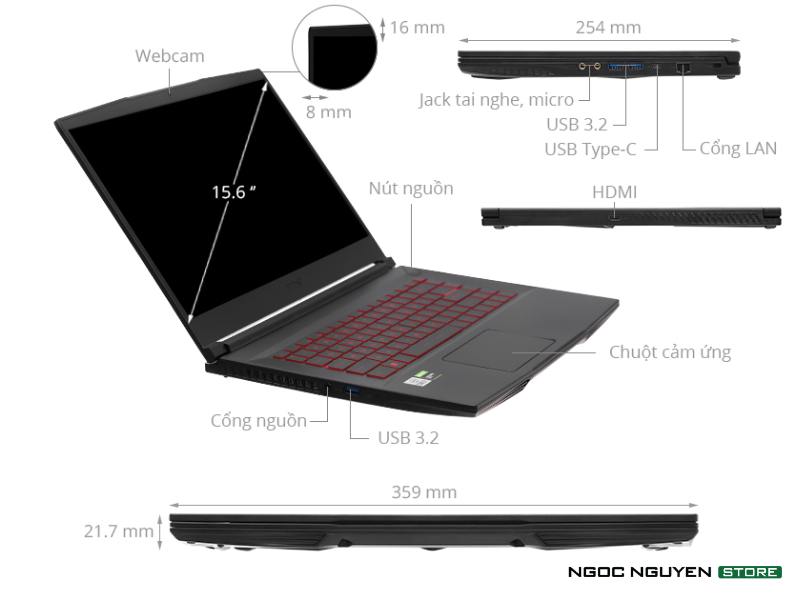 Đánh giá chi tiết laptop gaming MSI GF63 Thin 11SC 664VN