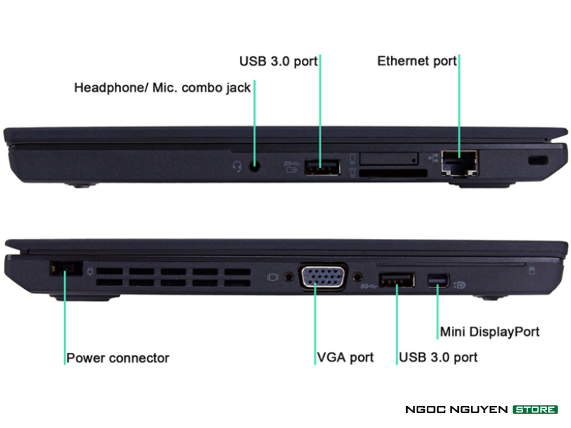 Là một chiếc máy tính doanh nhân, được các khách hàng là doanh nghiệp tin tưởng lựa chọn nên chiếc máy phải có một khả năng kết nối cực đa dạng mới đủ đáp ứng cho dân văn phòng. Máy gồm có 3 cổng USB 3.0, 1 cổng RJ45, 1 miniDP, 1 VGA, 1 cổng 4 in1 card reader, 1 jack 3.5mm cho âm thành và micro tích hợp, 1 optional SmartCard.