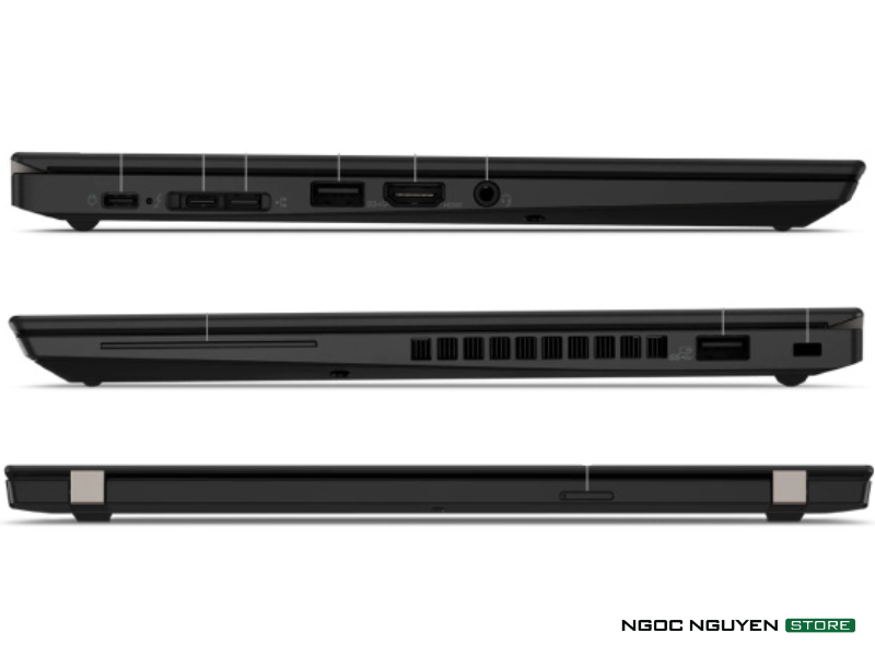 Mặc dù là chiếc Ultrabook mỏng nhẹ, máy vẫn trang bị đủ các cổng kết nối cần thiết. Máy có 2 cổng USB Type-A 3.2 Gen 1, 2 cổng USB Type-C hỗ trợ Thunderbolt 3, một cổng HDMI 2.0 thuận tiện cho việc xuất hình, và một cổng jack cắm tai nghe 3.5. Tuy nhiên, phiên bản X13 của AMD lại không được hỗ trợ Thunderbolt 3, hay PCIe 4.0, mà chỉ sử dụng thuần kết nối 3.2 Gen 2. Điều đáng tiếc là máy không được trang bị cổng RJ-45 truyền thống, nhưng là một chiếc máy mỏng nhẹ, việc .