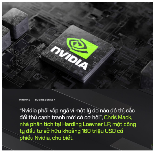 “Nvidia phải vấp ngã vì một lý do nào đó thì các đối thủ cạnh tranh mới có cơ hội”, Chris Mack, nhà phân tích tại Harding Loevner LP, một công ty đầu tư sở hữu khoảng 160 triệu USD cổ phiếu Nvidia, cho biết.