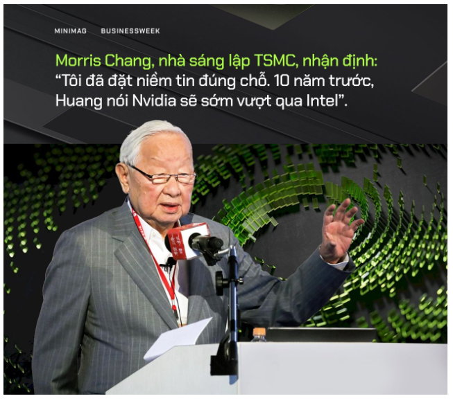 Tháng 7/2020, Nvidia được vinh danh là nhà sản xuất chip giá trị nhất của Mỹ. Morris Chang, nhà sáng lập TSMC, nhận định: “Tôi đã đặt niềm tin đúng chỗ. 10 năm trước, Huang nói Nvidia sẽ sớm vượt qua Intel”.