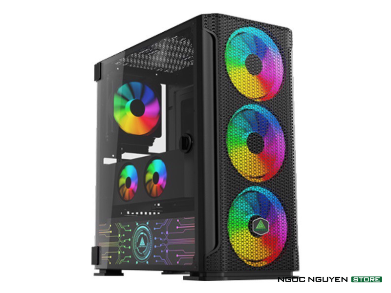 Với kiểu dáng thiết kế khung lưới và 2 bo viền bên cho cảm giác trầm tính và mạnh mẽ,FA-404 được trang bị 3 fan LED ARGB 140mm cho mặt trước, mặt bên kính trong suốt 6mm với panel LED RGB cho khung hộp nguồn PSU.