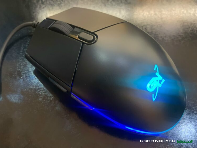 GM103 Có hệ thống led RGB được bố trí logo trên thân chuột và viền đáy chuột vô cùng đẹp mắt. Thêm đó với các bạn không thích màu mè cũng có thể chọn chế độ tắt led bằng nút tắt bên dưới chuột một cách dễ dàng