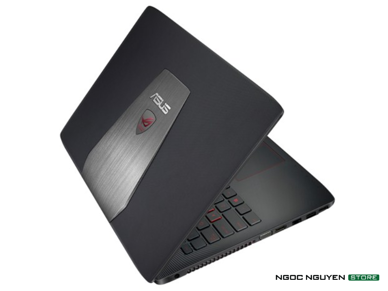 Lấy cảm hứng thiết kế từ chiếc phi cơ tàng hình F-22, Asus GL552JX sở hữu một vẻ ngoài nổi bật, cứng cáp cùng những đường nét mạnh mẽ đặc trưng của những chiếc laptop Gaming từ Asus. Đúng như những gì cần có trên một thiết bị chơi game, các chi tiết trên Asus GL552JX đều được làm rất tỉ mỉ, liền mạch và có độ hoàn thiện cao giúp máy luôn chắc chắn, đồng thời hạn chế tối đa hỏng hóc do va đập khi sử dụng cũng như khi di chuyển. Mặt lưng máy được thiết kế hết sức ấn tượng với tấm ốp giả kim loại có logo Asus cùng biểu tượng logo ROG màu đỏ cực đẹp và được bao quanh bởi lớp vỏ nhựa nhám có các lỗ nhỏ li ti trải đều đẹp mắt.