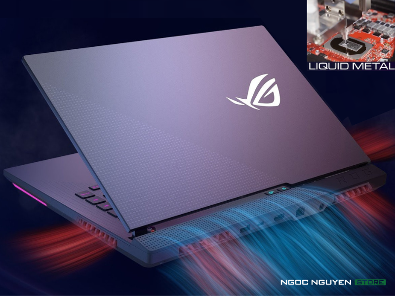 Asus ROG Strix G15 G513 có hệ thống tản nhiệt siêu khủng. Với keo tản nhiệt kim loại lỏng trên CPU máy sở hữu khả năng làm mát vô cùng tuyệt vời. So với phương pháp làm mát truyền thống thì phương pháp này có tính vượt trội hơn nhiều lần.
