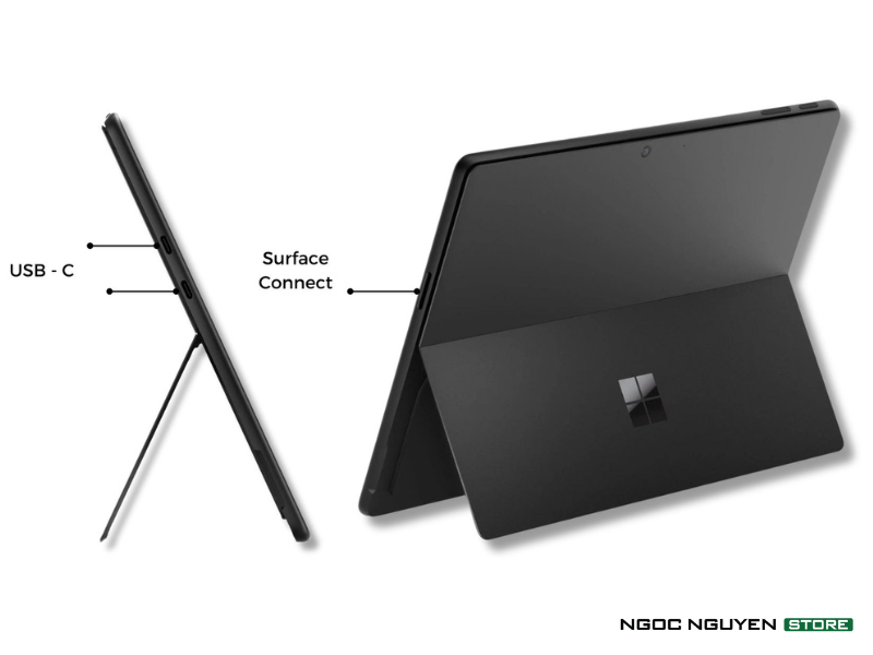 Surface Pro 11 hỗ trợ đầy đủ các cổng kết nối cần thiết bao gồm USB-C, USB-A, khe cắm thẻ MicroSD, và jack tai nghe 3.5 mm. Ngoài ra, máy còn được trang bị công nghệ Wi-Fi 6 và Bluetooth 5.1, đảm bảo kết nối không dây ổn định và hiệu quả.