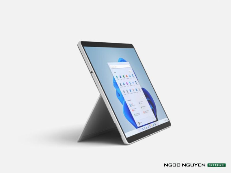 Khi sở hữu một chiếc Surface Pro 8, bạn sẽ không cần mua thêm chân đỡ máy tính bảng. Vì Microsoft đã thiết kế phần chân ở sau máy, có khả năng đỡ cũng như điều chỉnh góc nhìn cao thấp của màn hình.