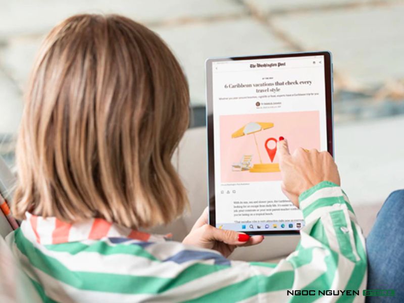 Màn hình lớn 13inch PixelSense tràn viền mang đến tầm nhìn thoáng mãn nhãn, hỗ trợ cảm ứng đa điểm để thao tác thuận tiện hơn.