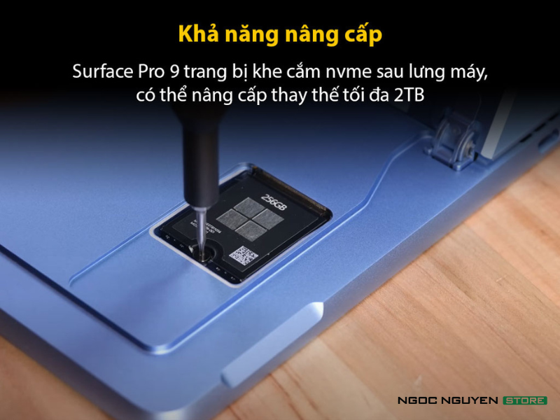 Surface Pro 9 trang bị khe cắm nvme sau lưng máy, có thể nâng cấp thay thế tối đa 2TB