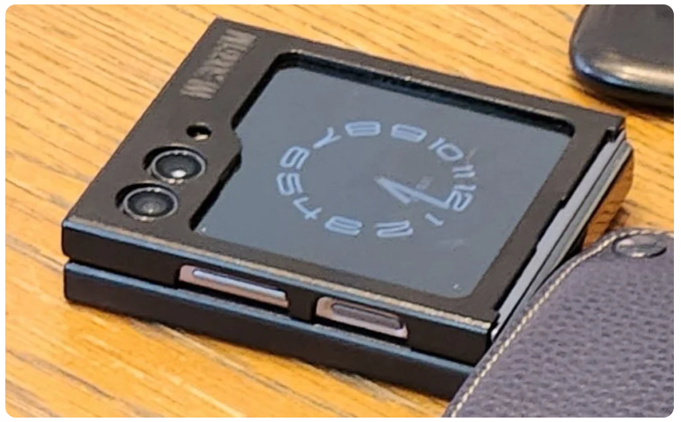 Leaker Revegnus vừa mới chia sẻ một hình ảnh thực tế được cho là chiếc Galaxy Z Flip5 sắp tới. Máy được bọc trong một lớp case bảo vệ tuy nhiên vẫn có thể nhìn thấy hình ảnh màn hình ngoài cùng với cụm camera kép, hoàn toàn tương đồng với những hình ảnh rò rỉ trước đó. Màn hình ngoài của Z Flip5 sẽ được tăng kích thước lên rất nhiều và có hình dạng y như icon folder trên máy tính còn cụm camera kép sẽ được bố trí theo chiều ngang. Nút nguồn và âm lượng được đặt ở cạnh phải.